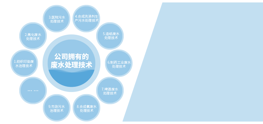 公司在污水處理方面擁有MBR、MBBR、SBR、A2/O、厭氧發酵、高級氧化、膜分離等核心技術,為客戶提供工業、市政、生活、農業等各種污水治理解決方案,以達到排放標準或再次使用的水質要求。
